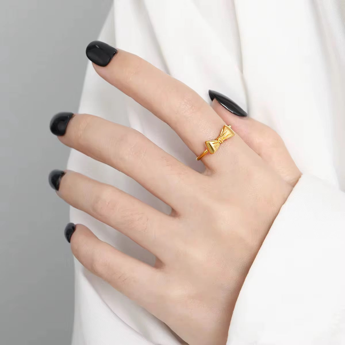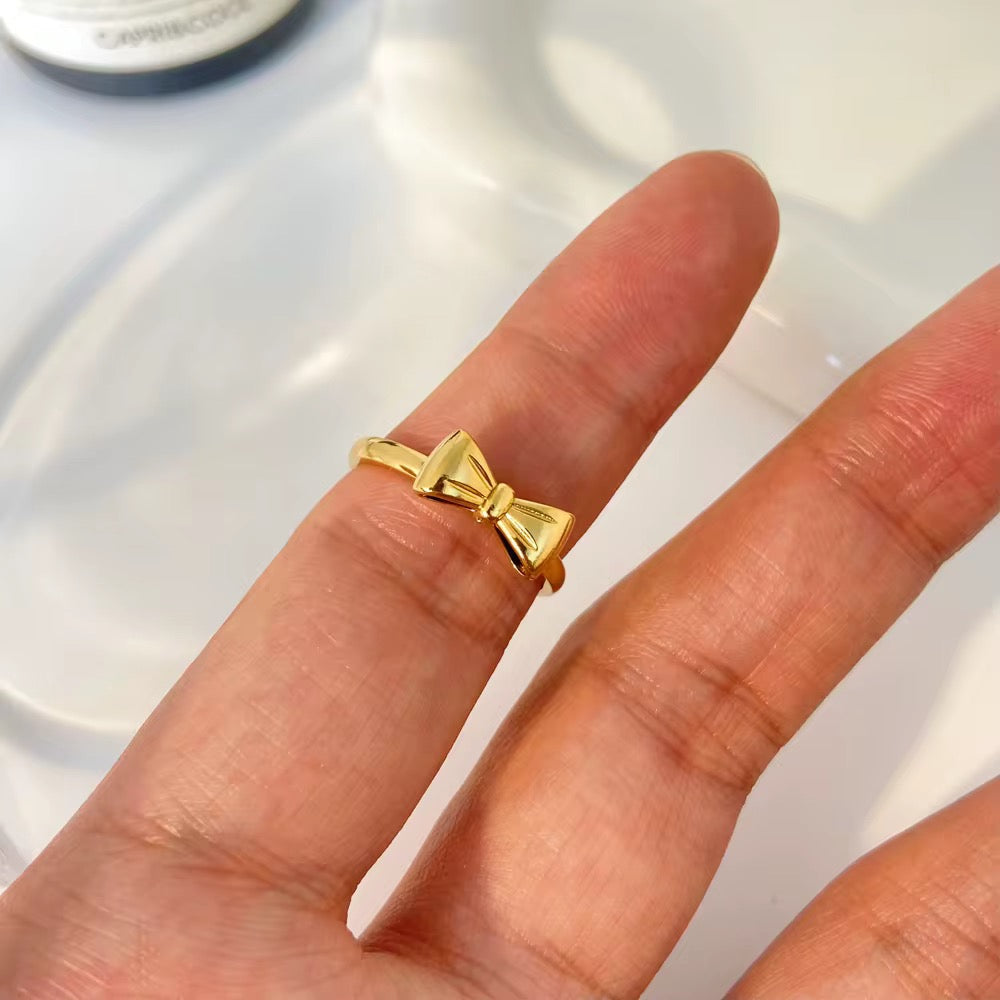 Crafted with premium gold plating, this non-adjustable ring offers durability and lasting shine. Its lightweight design makes it ideal for everyday wear, while the bow motif adds a touch of charm and sophistication.