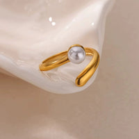 Embrace timeless elegance with our Classic Pearl Accent Adjustable Gold Plated Ring. Featuring a lustrous pearl centerpiece set on a sleek open band, this piece combines sophistication with modern minimalism, making it a perfect everyday accessory.
