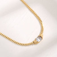 The sleek, herringbone chain complements the sparkling crystal, creating a sophisticated and timeless piece. Perfect for adding a touch of refinement to any outfit.