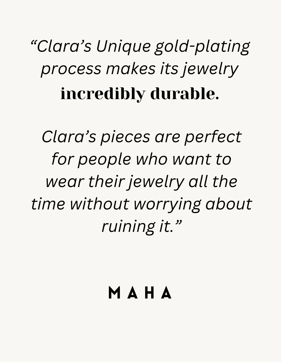 Each CLARA piece is waterproof, sweatproof, hypoallergenic, tarnish-free, and cosmetic-friendly.