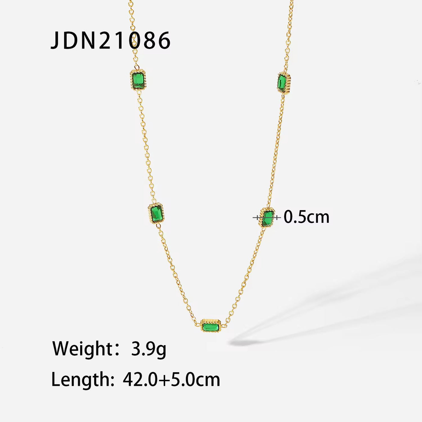 Make a statement with our Green Crystal-Studded Thin Chained Necklace! Designed to capture and reflect light beautifully.